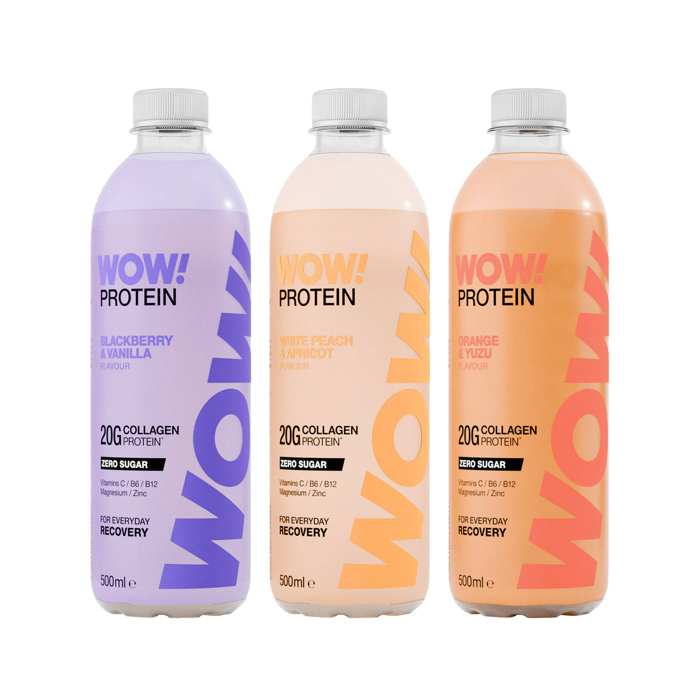 WOW! Protein optimises your recovery with 20g of clear collagen protein, the optimum amount of effective nutrition. With added vitamins and minerals, zero sugar and only 94 calories per bottle.